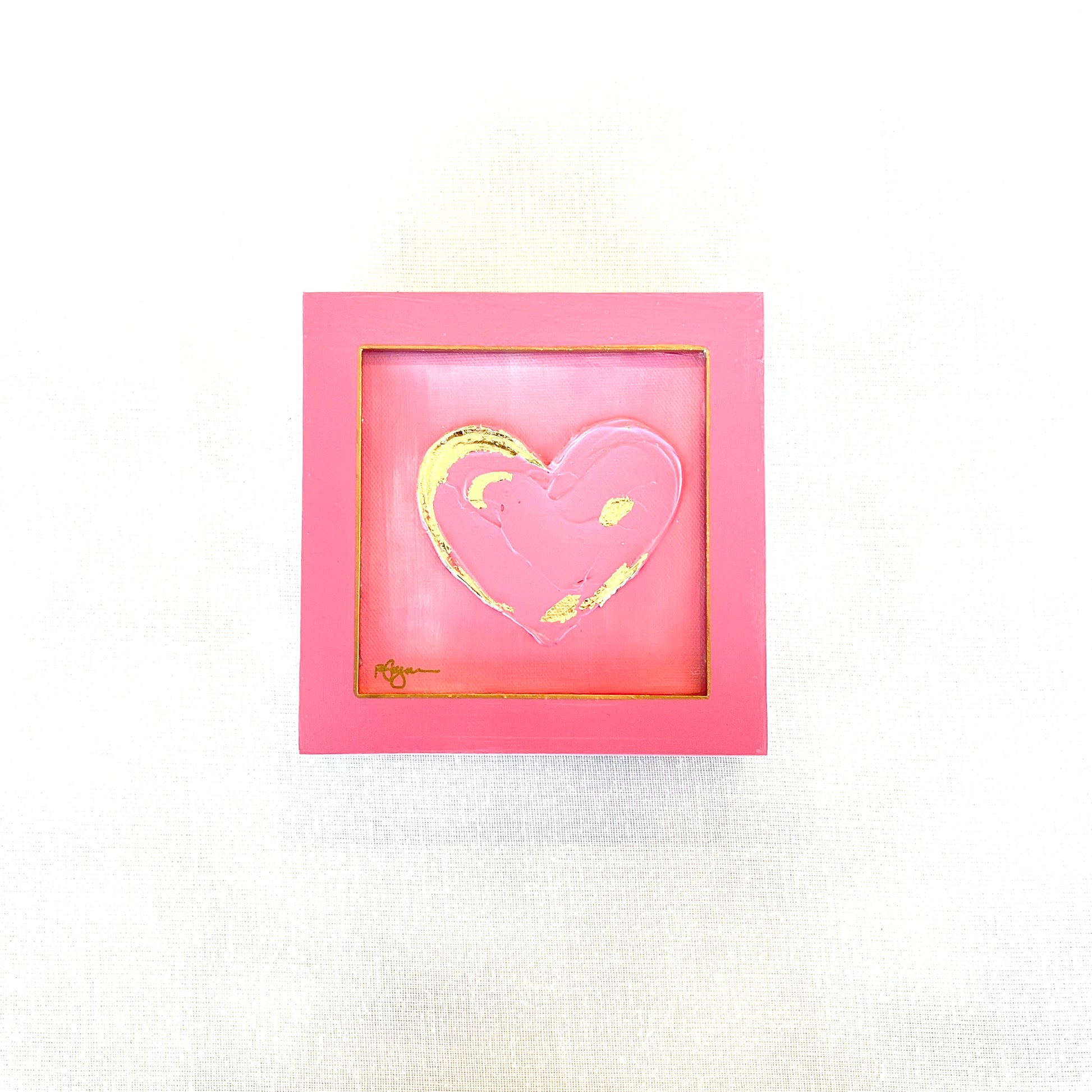 PINK AND GOLD HEART IN HAND PAINTED FRAME