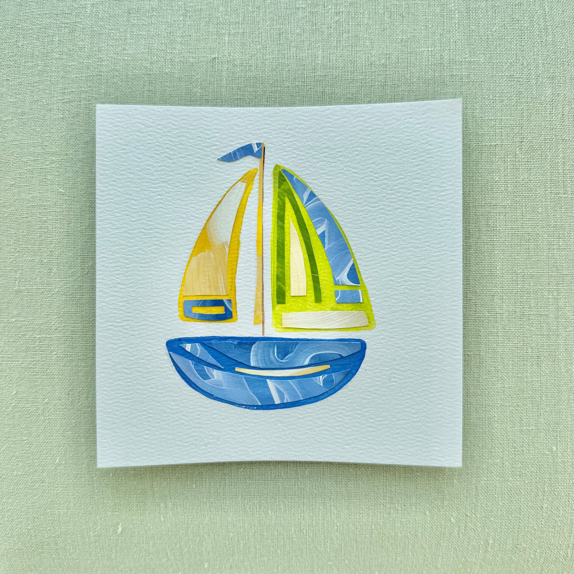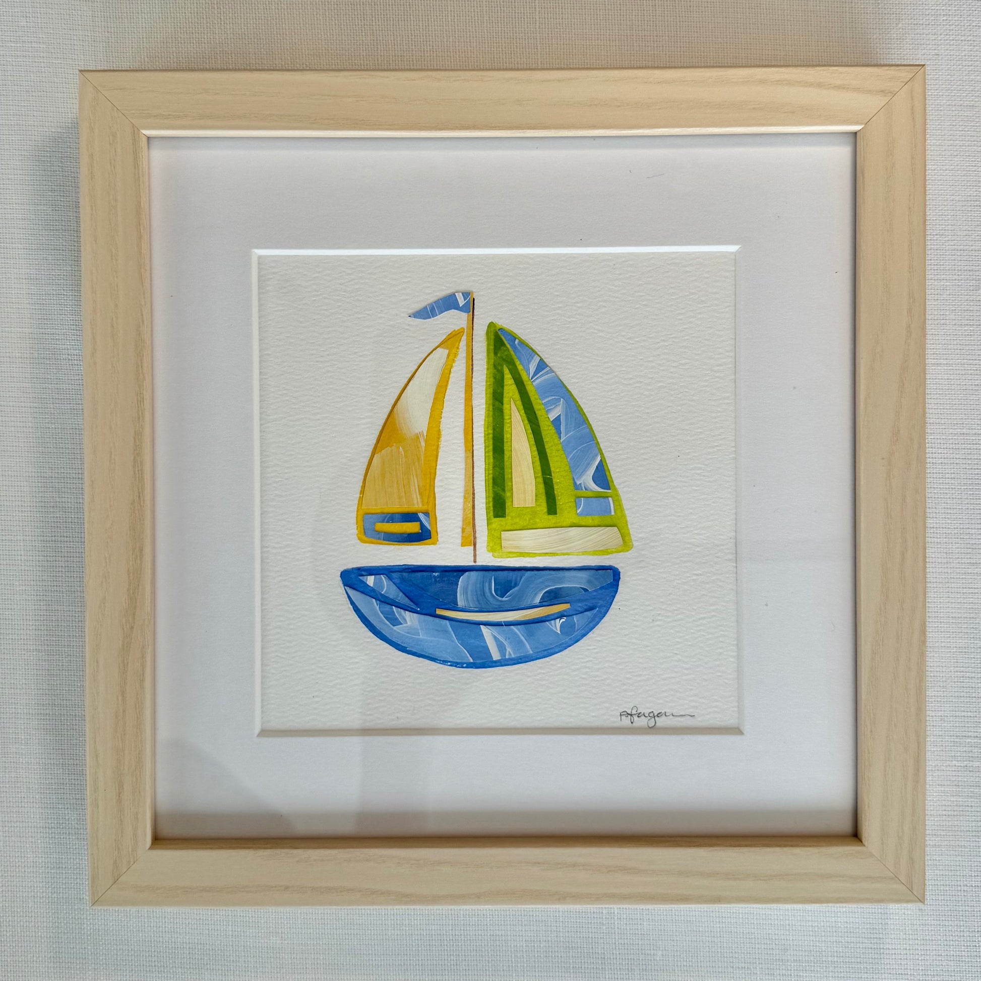 ACRYLIC COLLAGE IN WHITE MAT AND NATURAL WOODEN FRAME