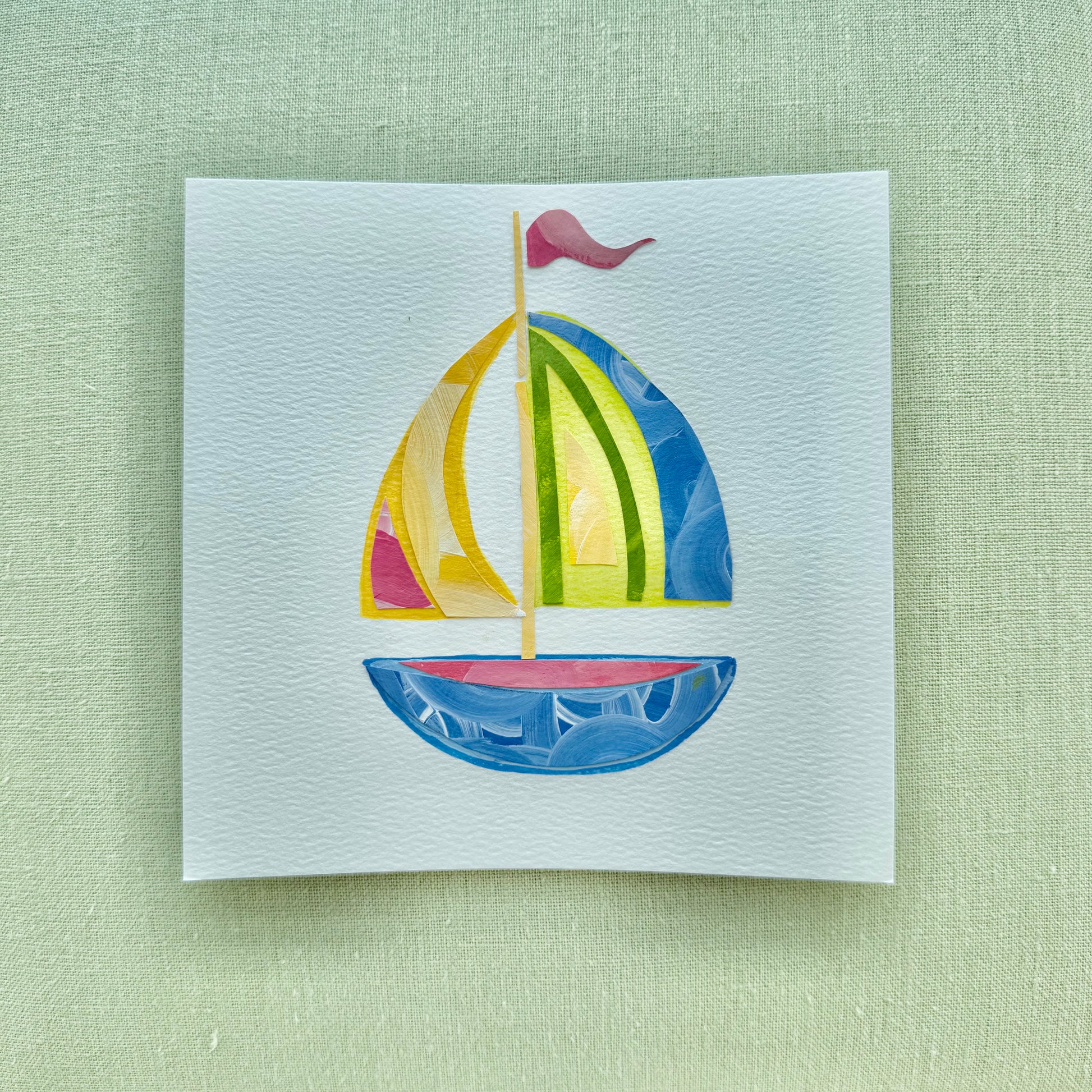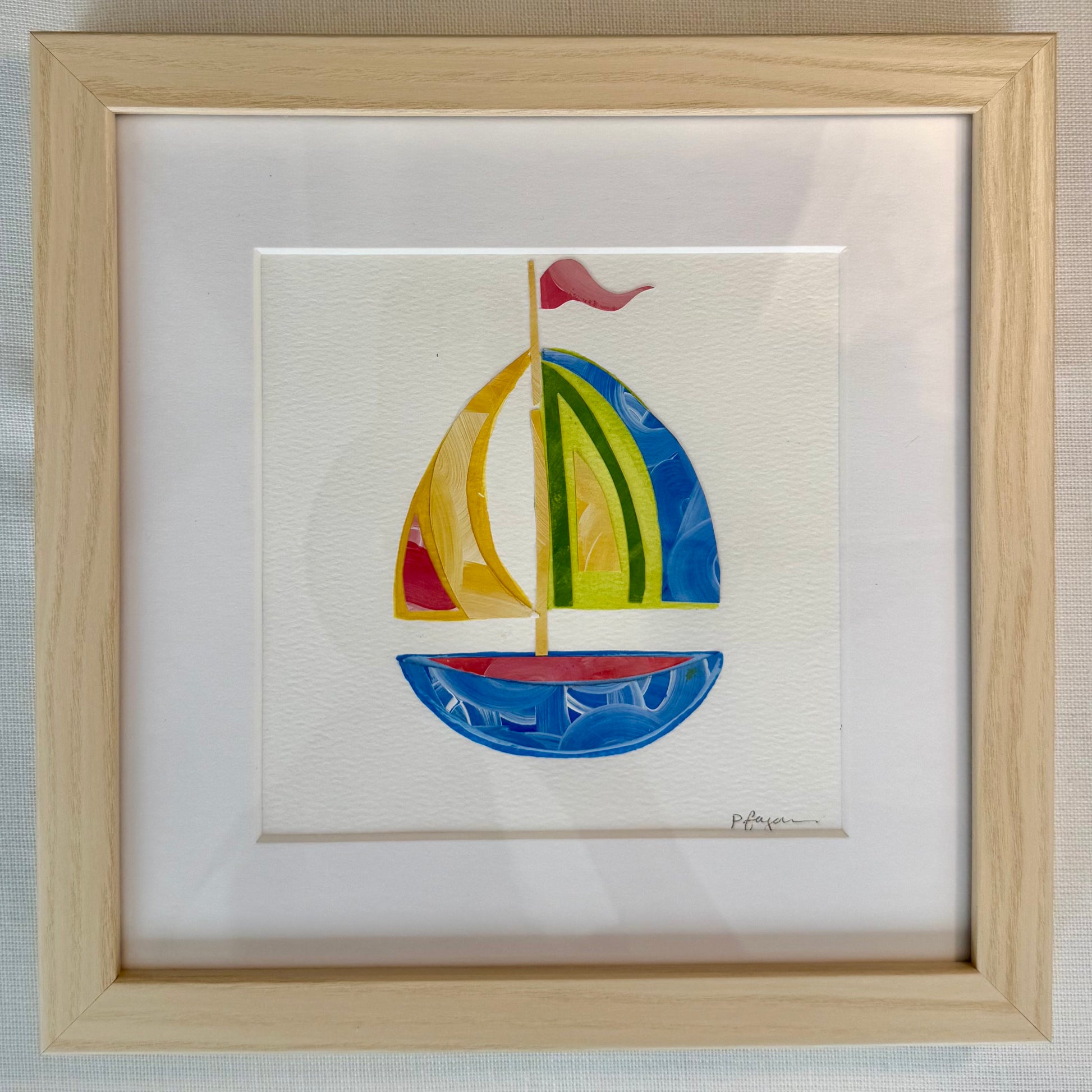 ACRYLIC COLLAGE IN WHITE MAT AND NATURAL FRAME
