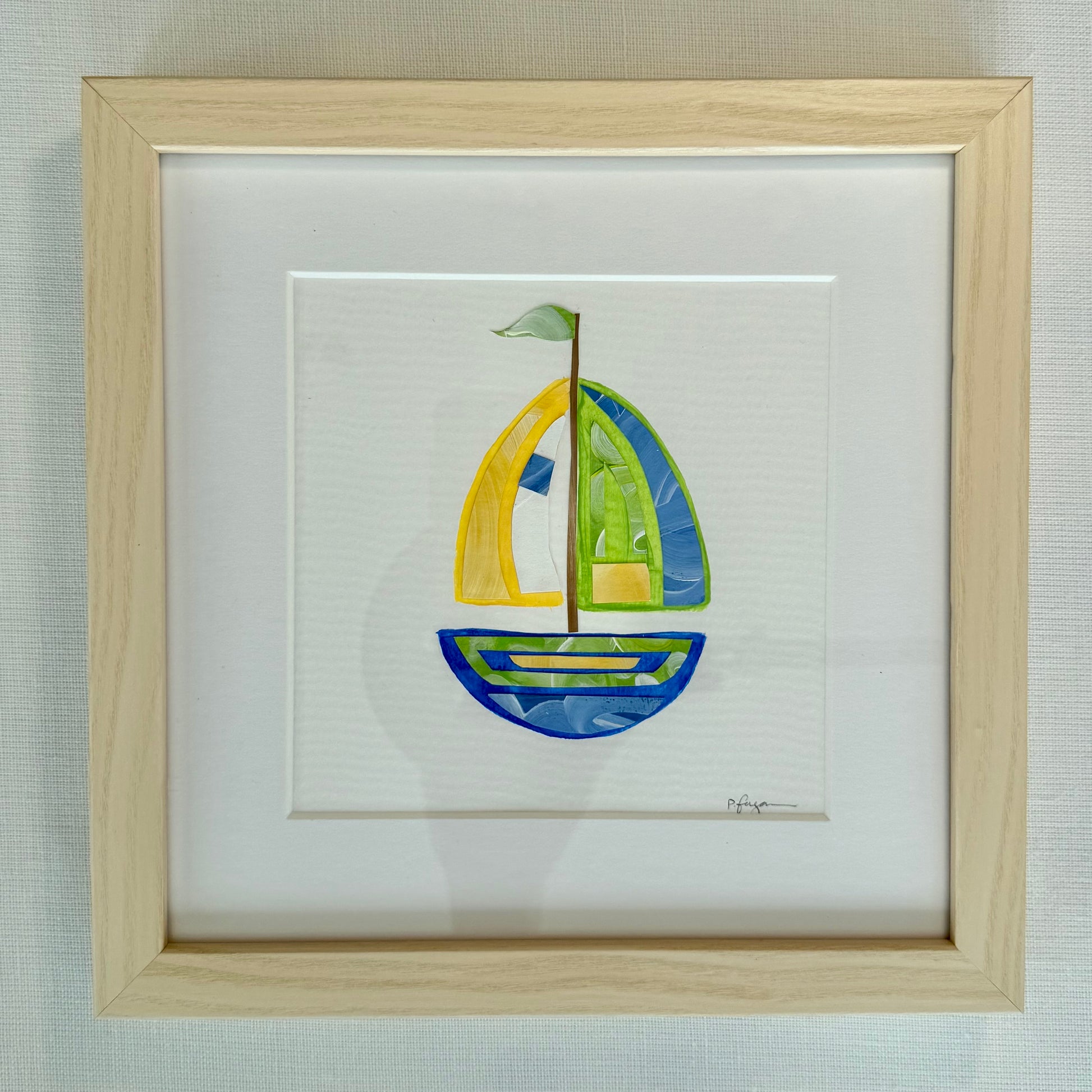 ACRYLIC COLLAGE IN WHITE MAT WITH NATURAL FRAME