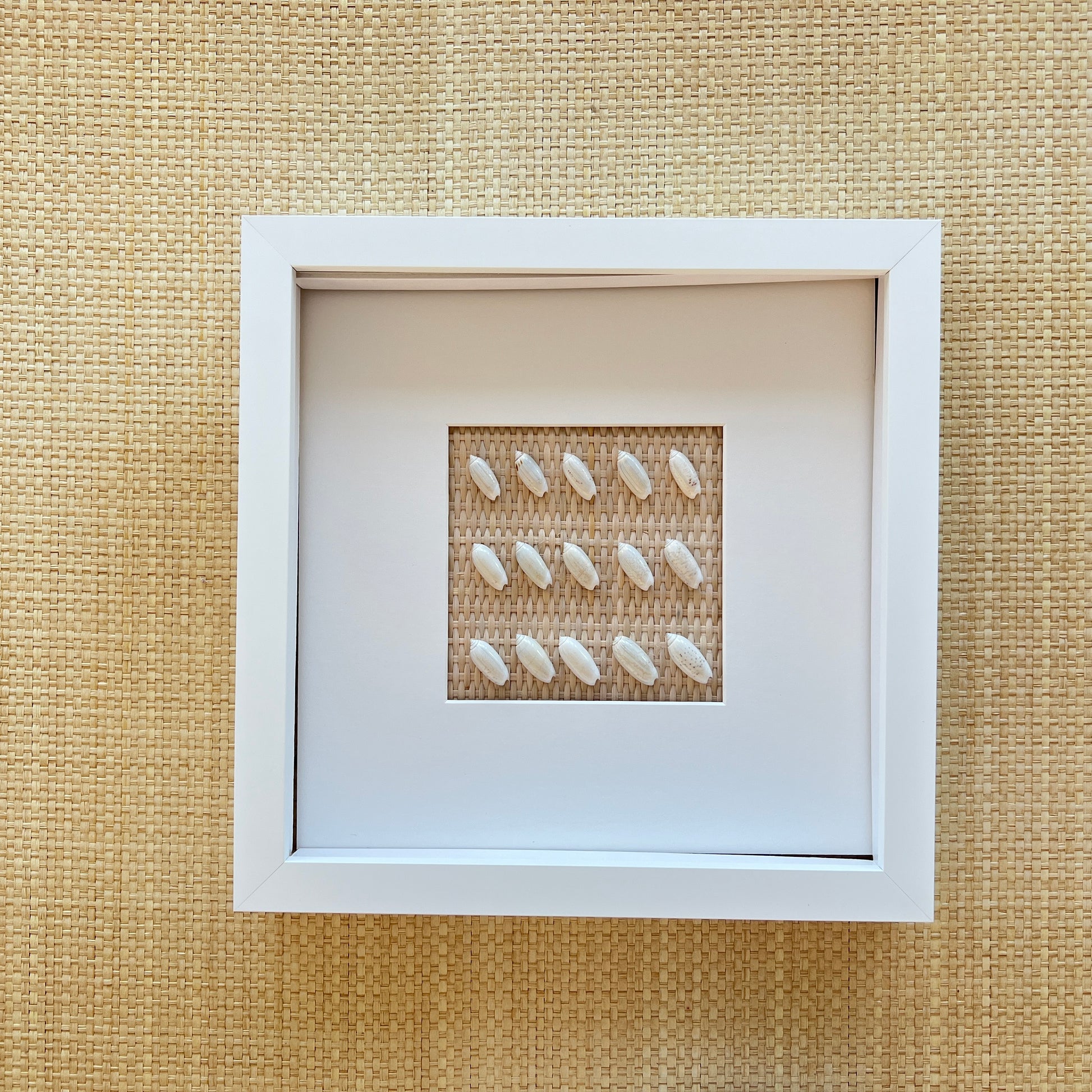 SHELL MOUNTED ON GRASSCLOTH WITH WHITE MAT AND FRAME